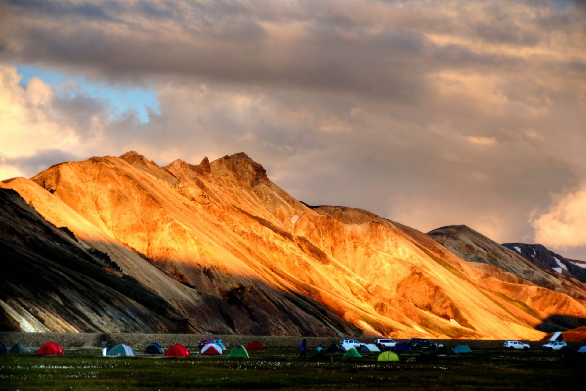 We start the day with Seljalandsfoss waterfalls and neighboring Gljufrabui. Then, walk deep into the amazing Nauthúsagil slot canyon and continue to Iceland’s largest canyon, Stakkholtsgjá. From here we will reach the black beaches of Dyrholaey and in Vik n Myrdle turn north on the F208 leading towards the Hekla volcano to the rainbow mountains of Landlammaguar. Overnight at Landlammaguar campsite.