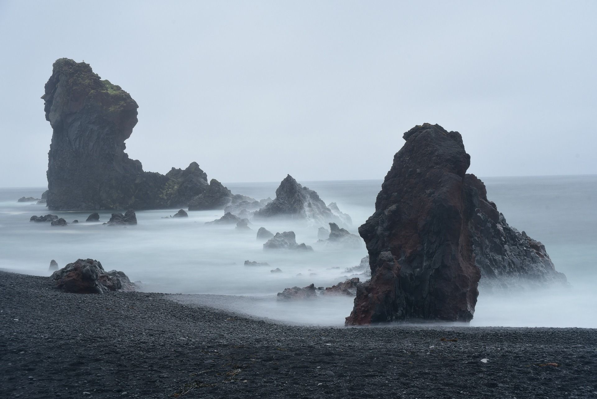 Snæfellsnes peninsula tour. We will start the day with the iconic view of Kirkjufellsfoss waterfall, we will approach Bæjarfoss waterfall. Then we will photograph the Ingjaldshólskirkja church. Continue on to the volcanic crater of Saxholl and the black Djúpalónssandu beach surrounded by amazing lava sculptures. We will admire the volcanic cliffs of Londragar and Gattlekur. If we have enough strength, we will look into the Rauðfeldsgjá canyon. Before we reach the Sturungalaug hot spring, lost among the lava fields, we will still be able to admire the Bjarnafoss waterfall and look for seals on Ytri Tunga beach. Overnight at a campsite in Reykhollar.