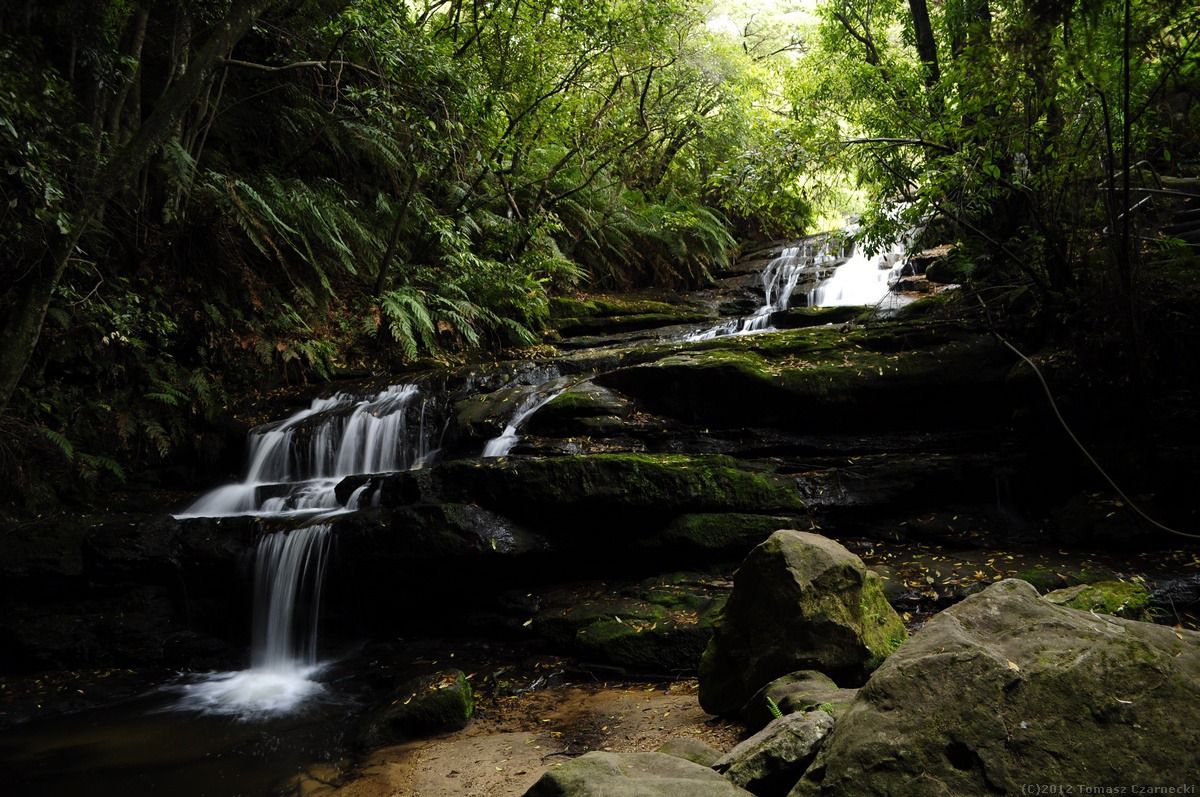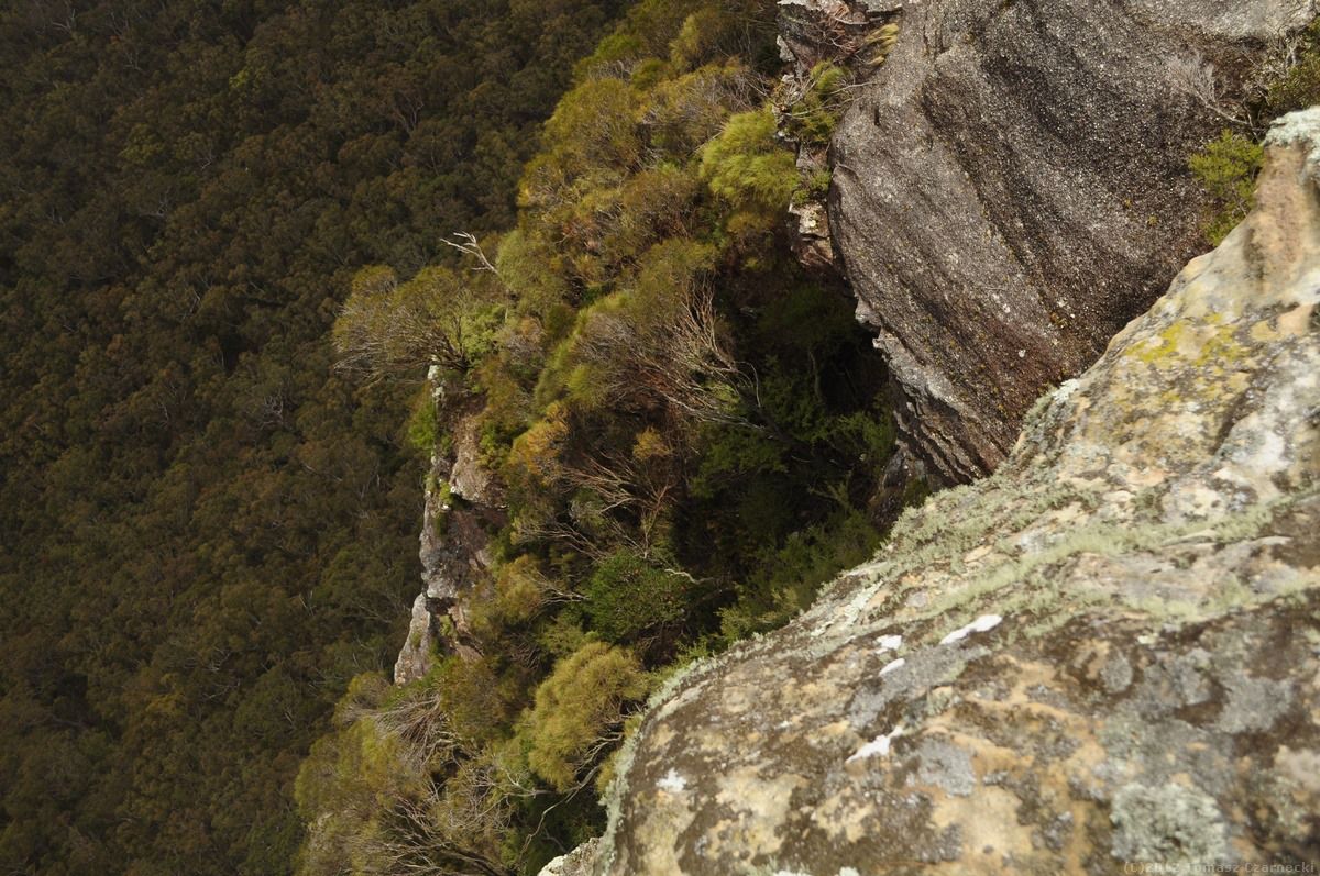 Gdy dojeżdżamy do punktu widokowego Narrow Neck po mgle nie ma już śladu. Przed nami otwiera się rozległa panorama Gór Błękitnych – takich gór Stołowych na sterydach. Wszystko jest większe, horyzont bardziej odległy. Pod nami tropikalny las. Jadąc do centrum dla odwiedzających Scenic World Blue Mountains zatrzymujemy się jeszcze przy punkcie widokowym Landslide. Następnie wykupujemy bilety na kolejki linowe, które nas najpierw zwiozą na dno doliny, a potem po zabraniu na górę przewiozą w okolice Echo Point pozwalając podziwiać z lotu ptaka wodospad Katoomba spadający z klifów wznoszących się pionowo z deszczowego lasu. Zanim jednak będziemy latać spadamy stromą kolejką 310 metrów na dno doliny Jamison. Tu w pięknym lesie eukaliptusów i drzewiastych paproci znajduje się mający 2,4km pomost wijący się parę metrów ponad dnem doliny. Z dolnego punktu ścieżki kolejna kolejka wywozi nas ponad 500 metrów w górę do Scenic World, gdzie przesiadamy się do kolejki linowej kursującej pomiędzy krawędziami doliny. Jedziemy dalej – do Kaskad Leura. Tu spacer ścieżką przez niezwykły las paproci wszelkich rozmiarów prowadzi do pięknych kaskad strumienia spadającego z kolejnych stopni coraz niżej w dolinę. Przy kaskadach ekipa zawraca, ja jednak muszę nadrobić poranne zaspanie i ruszam trasą okrężną, z której roztaczają się widoki na wodospad Bridal Veil i całą dolinę. Na koniec, przed powrotem do Sydney, zatrzymujemy się jeszcze w niezwykle eksponowanym punkcie widokowym Sublime Point.