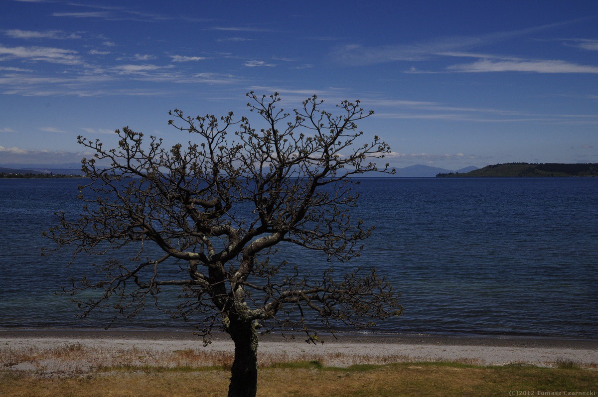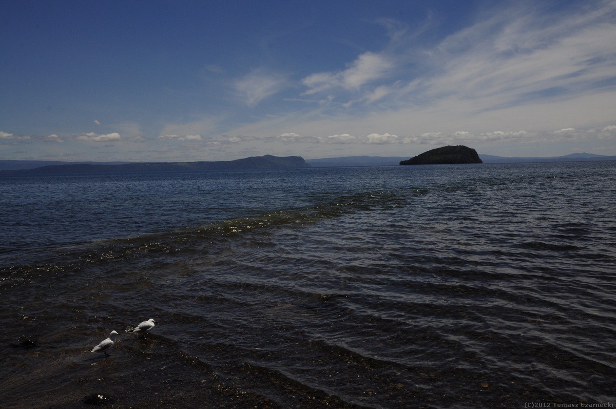 Zatrzymujemy się na chwilę nad jeziorem,Ohakiru, na którego drugim brzegu wznoszą się tarasy gejzerów Orakei Korako (maori – Miejsce upiększania). Mimo zalania 2/3 tarasów w 1961 po zbudowaniu zapory na rzece Waikato, w efekcie czego na rzece powstało sztuczne jezioro a poziom wody podniósł się o 18 metrów, Orakei Korako pozostaje największym systemem geotermalnym Nowej Zelandii. Niestety ze względu na planowany na dzisiaj trawers Tongariro i stracony (?) czas w Wai-o-Tapu decydujemy się jechać dalej.