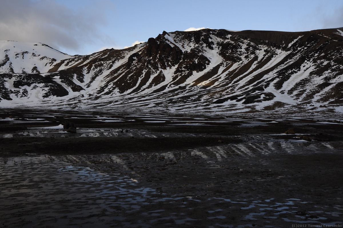 Docieramy na parking w Ketetahi skąd mam wyruszyć sam przedz Tongariro do Mangatepopo, gdzie Jerzy zostawi auto, którym z kolei wrócę po resztę ekipy. Na szczęście dołącza do mnie Stefan. Zawsze raźniej wędrować we dwóch – szczególnie gdzieś, gdzie jestem pierwszy raz. Ruszamy w górę mijając ostrzeżenia o laharach – Te Māri, jeden z kraterów wulkanu Tongariro, uaktwynił się dwa miesiące temu wyrzucając metrowej średnicy głazy na odległość 2 km i między innymi uszkadzając schronisko Ketetehi.