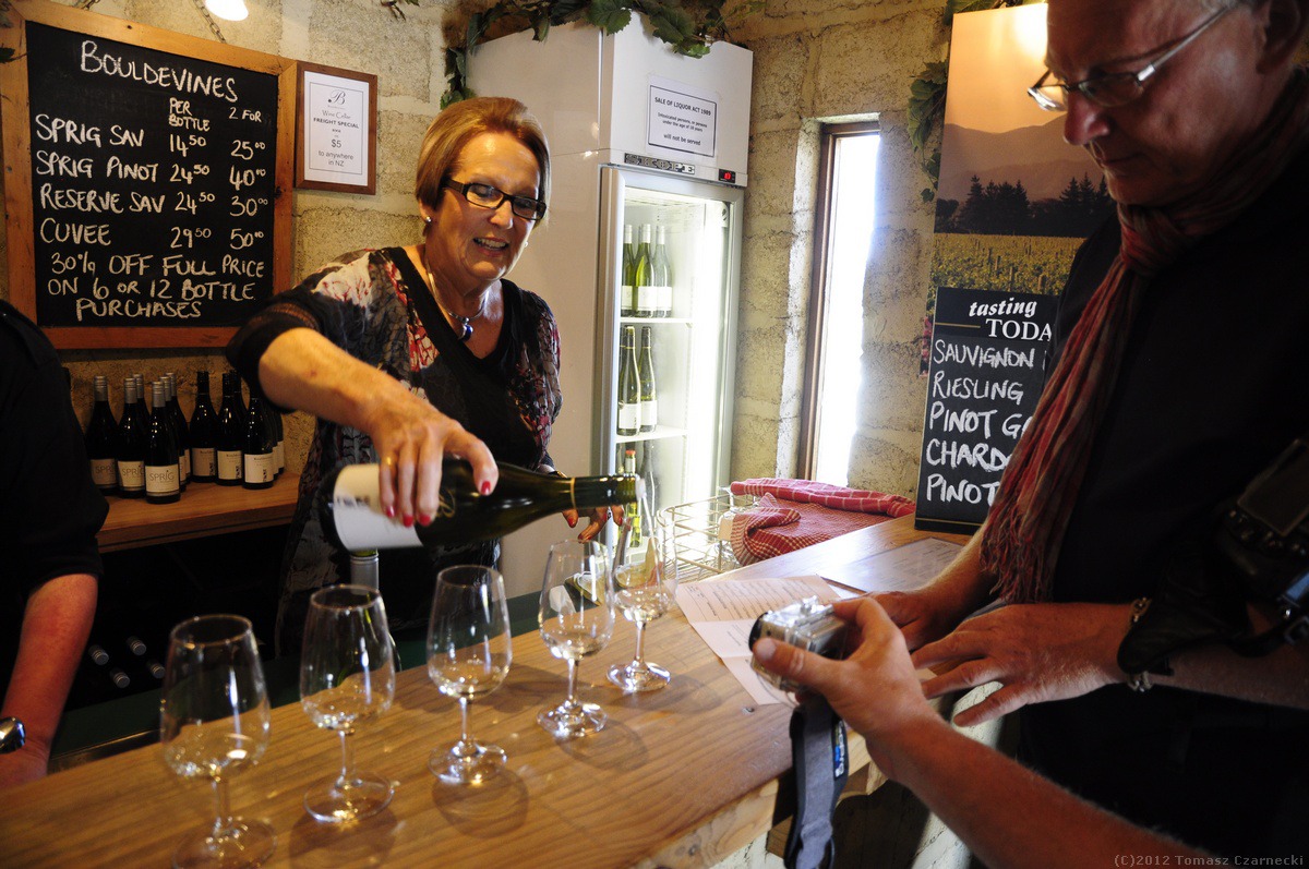 Jednak pierwszym punktem programu nie jest winnica ale fabryka czekolady Makana Confections. Ach – ten zapach! Ale ceny… niestety. Ruszamy dalej zaczynając z najwyższej półki – od winnicy Saint Clare Estates, gdzie – jak wyjaśnia nam Stefan – wina są najwyższej jakości, ale degustacja jest dość kosztowna (szczególnie, że w kolejnych winnicach degustacja była za darmo). Jednak miejsce prezentuje się wspaniale, rzędy winorośli kończą się panoramą gór. Kwitną róże. Obok można kupić produkowane lokalnie dżemiki (kupuję) i herbaty.