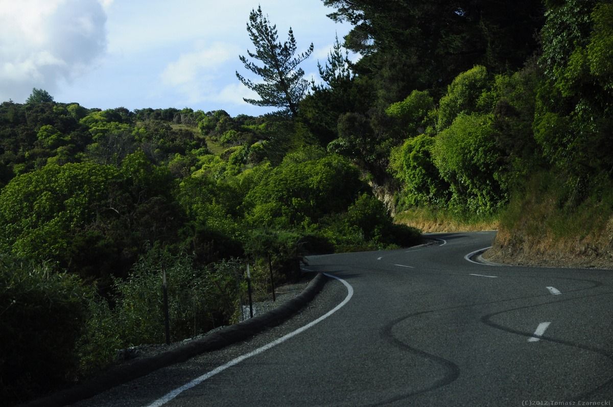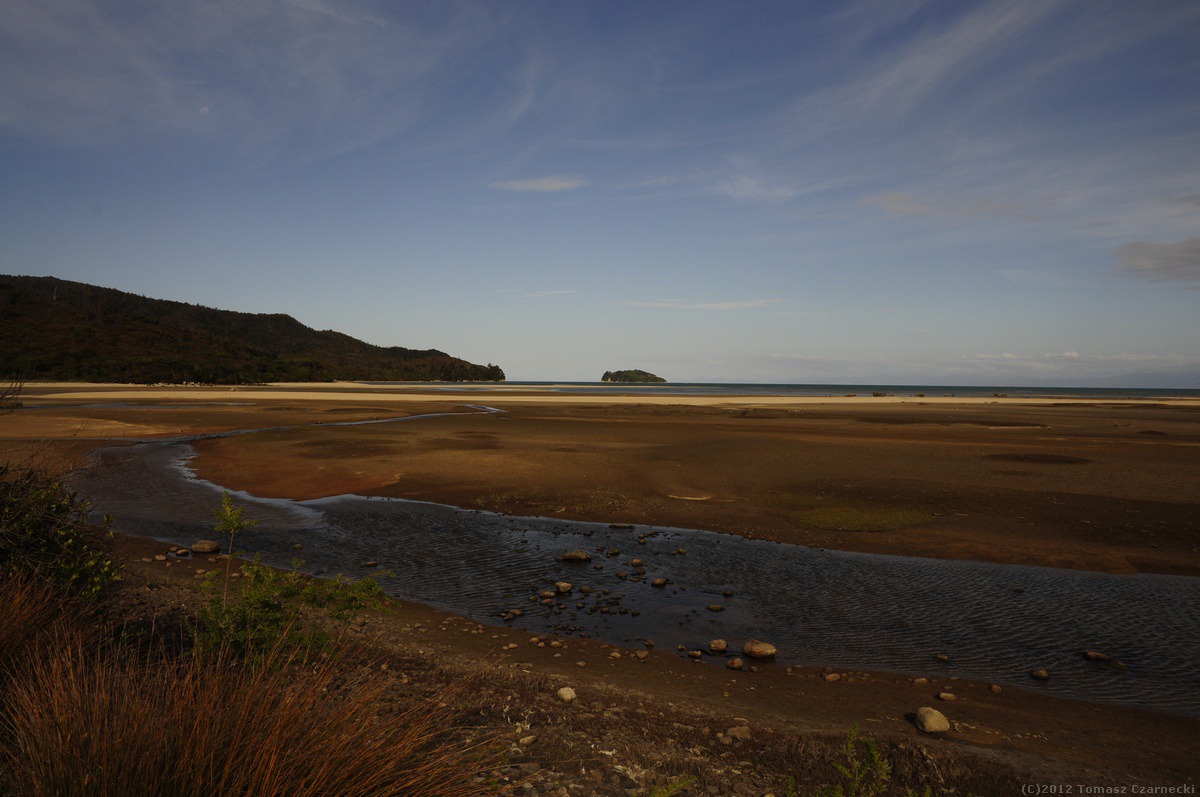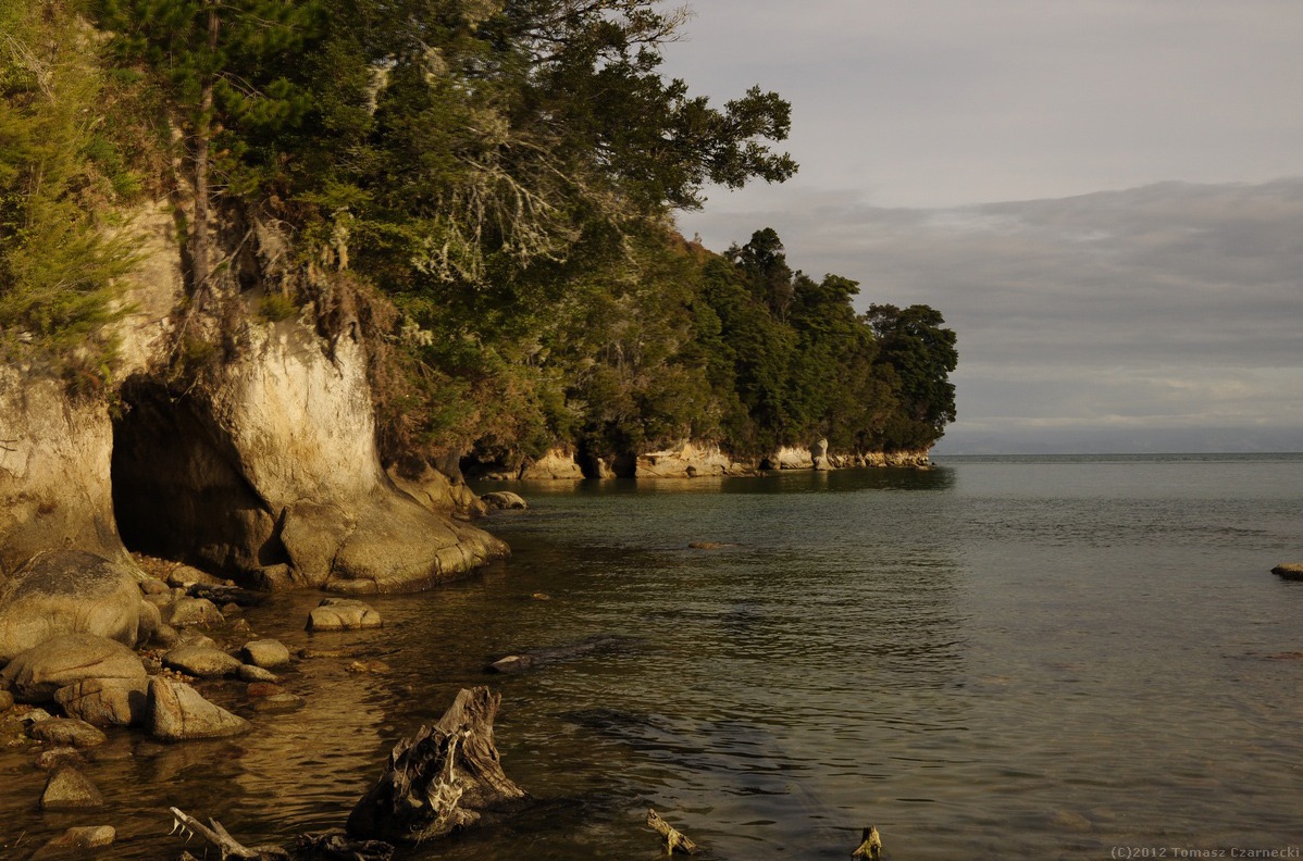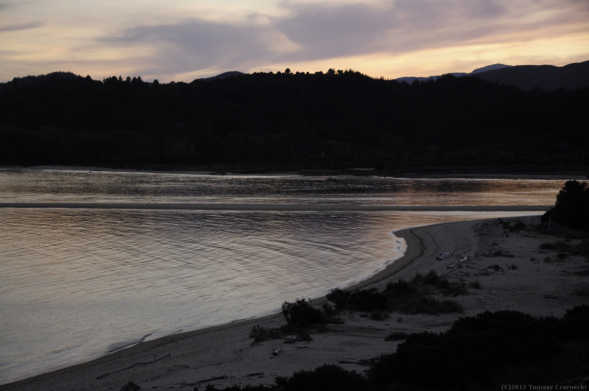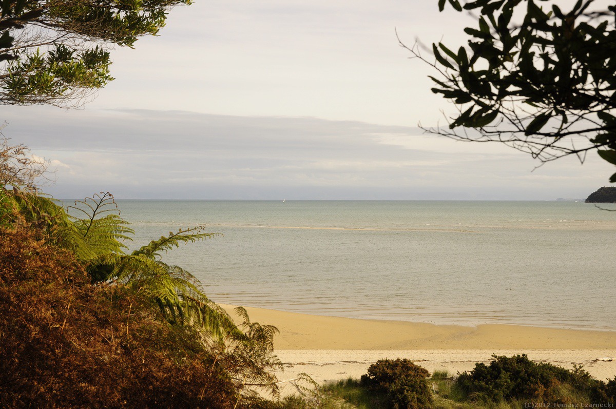 Krętą drogą przez góry dojeżdżamy nad piaszczystą zatokę – Sandy Bay w Marahau skąd ścieżką przez paprociowy las parku narodowego Abel Tasman nad brzegiem morza wędrujemy do Apple Tree Bay. Szumią niewielkie kaskady. Po polanach biegają – rozczarownie totalne, introdukowane z kaliforni – śliczne czubate przepióry kalifornijskie (Callipepla californica) . Wraz z zachodzącym Słońcem wracamy do samochodu.