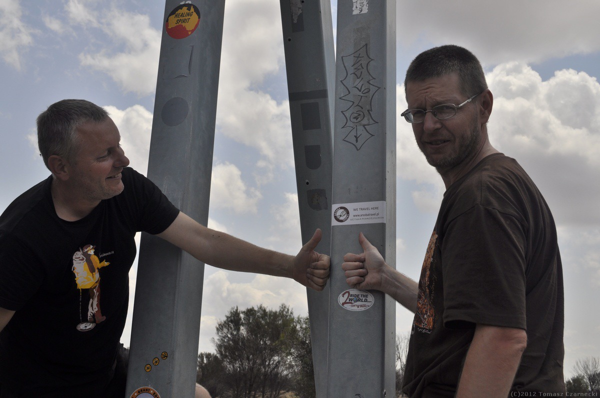 Rano wymieniamy dwa małe samochody na jeden duży. Na północ do Darwin zawiezie nas Toyota Landcruiser. Wielka. Paliwożerna. Niewygodna. Ponieważ bagaże muszą wylądować na dachu musimy jeszcze zdobyć w Alice Springs solidną plandekę i kilometr lin. Gdy docieramy pod hostel ekipa już czeka z bagażami. Ładuję się na dach i rozpoczynamy upychanie, przywiązywanie i zabezpieczanie. Próba szpanerskiego zejścia kończy się totalnym łomotem głową w dół. Straty własne – niewielkie. Potem jeszcze zakupy – parkowanie tym potworem na parkingu pełnym zwykłych samochodzików to wyzwanie. Ale udaje się nam niczego nie uszkodzić. Tylko po zakupach okazuje się, że … tak… jakby… nieco mało jest w środku miejsca. A trzeba będzie przejechać tak ponad półtora tysiąca kilometrów. Wracamy po Jurka do hostelu i w końcu ruszamy na północ.